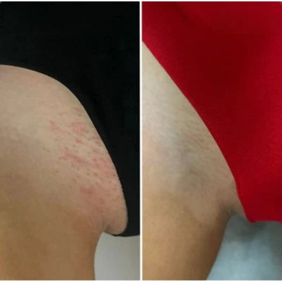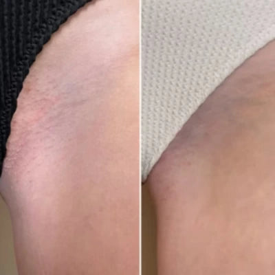 La triple exfoliación (BHA+AHA+PHA) disuelve suavemente la acumulación de células muertas que obstruyen los folículos. Esto permite que los vellos crezcan hacia afuera naturalmente, sin quedar atrapados bajo la piel.